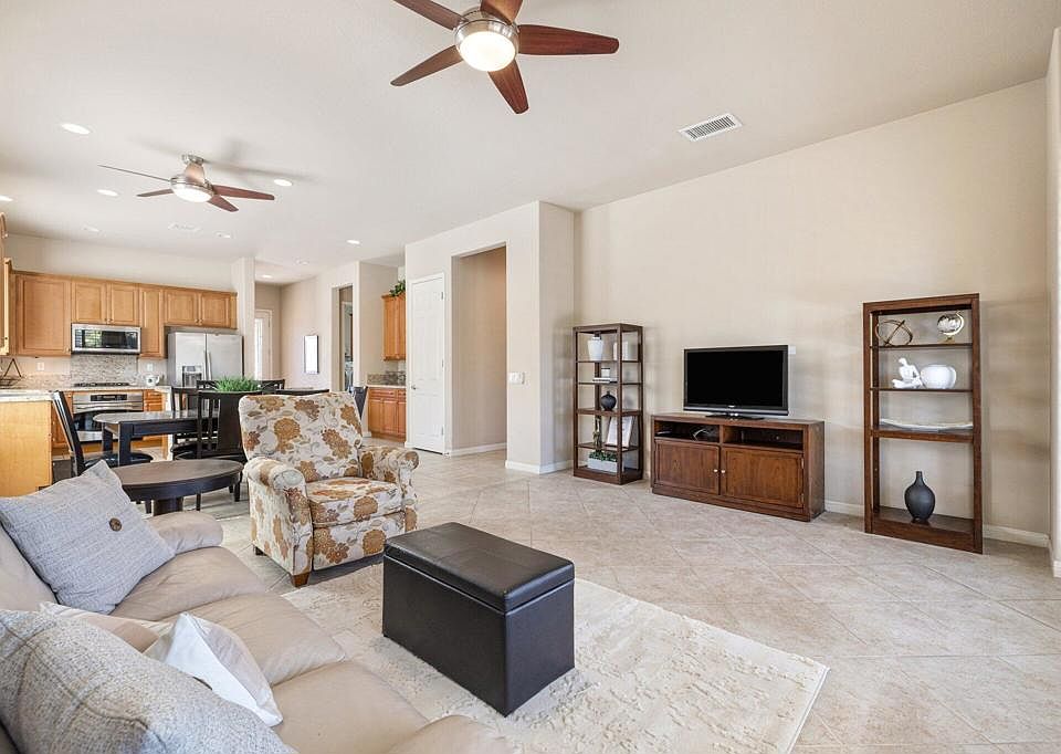 Welcome to this beautifully maintained Serrente model, which is offered FURNISHED. This 2-bedroom plus den home features an inviting enclosed courtyard, perfect for morning coffee or evening relaxation. The kitchen is a standout, featuring granite countertops, stainless steel appliances, and upgraded fixtures, including a newer microwave, faucet, and sink. A newer AC system provides year-round comfort. Enjoy outdoor living at its best with a cozy firepit, and a raised cement platform currently accommodating a spa -- ideal for relaxation and entertaining. Located in the desirable Sun City Shadow Hills community, where residents enjoy low HOA dues and a wealth of amenities such as pools, tennis and bocce ball courts, two golf courses, and so much more. Don't miss the opportunity to live in one of the most sought-after active adult communities in the area!
