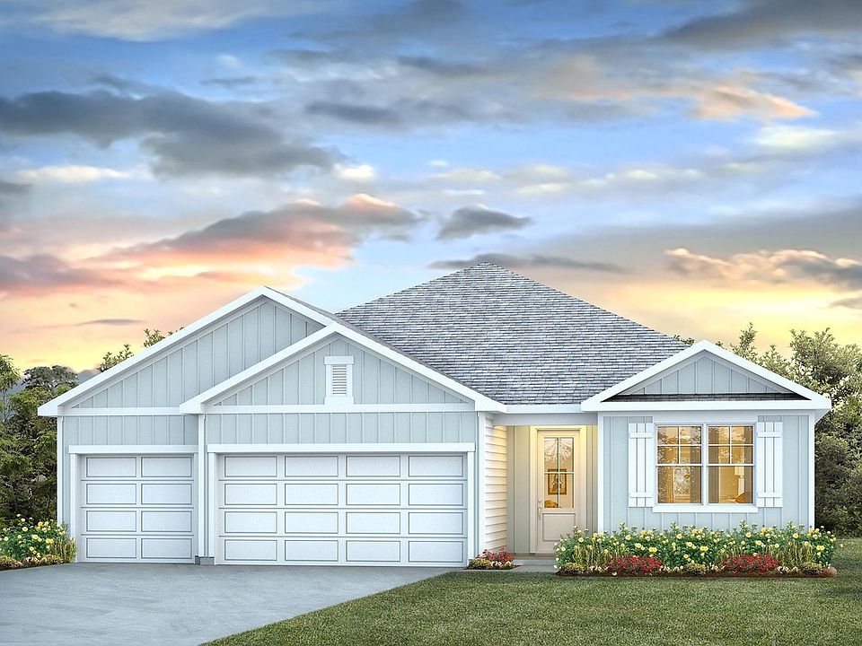 Modern Comfort Meets Versatile Living – Exceptional 4-Bedroom, 3-Bath Single-Level Home with 3-Car Garage Discover the perfect blend of style, functionality, and flexibility in this thoughtfully designed single-level home offering 4 bedrooms and 3 full bathrooms, including a private suite that is ideal for extended family, guests, or a private home office setup, this versatile suite includes its own bedroom and full bath. Step through a spacious foyer into the heart of the home: an open-concept great room that seamlessly connects the gourmet kitchen, dining area, breakfast room and living area, perfect for entertaining and everyday living. The kitchen features sleek quartz countertops, stainless steel appliances, a walk-in corner pantry, and a large center island with a breakfast bar — a true centerpiece for gathering and dining. Retreat to the private primary suite, complete with a large walk-in closet and a luxurious en-suite bathroom featuring a 5’ tile shower, double vanity, separate linen storage, and a private water closet. Two additional bedrooms share a full bathroom at the front of the home, offering plenty of space for family or guests. Enjoy the convenience of a 3-car garage and extend your living space outdoors with a covered rear porch easily accessed from the great room — perfect for morning coffee or evening relaxation. This home is designed for today’s modern lifestyles with flexible spaces, upscale finishes, and all the comforts you expect — all on a single level. Welcome home! This is America's Smart Home! Each of our homes comes with an industry leading smart home technology package that will allow you to control the thermostat, front door light and lock, and video doorbell from your smartphone.  *Photos are of a similar Destin home.  Pictures, photographs, colors, features, and sizes are for illustration purposes only and will vary from the homes as built. Home and community information, including pricing, included features, terms, availability and amenities, are subject to change and prior sale at any time without notice or obligation. Square footage dimensions are approximate. Equal housing opportunity builder.
