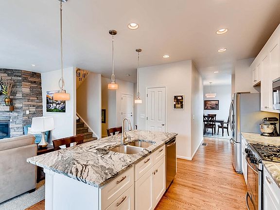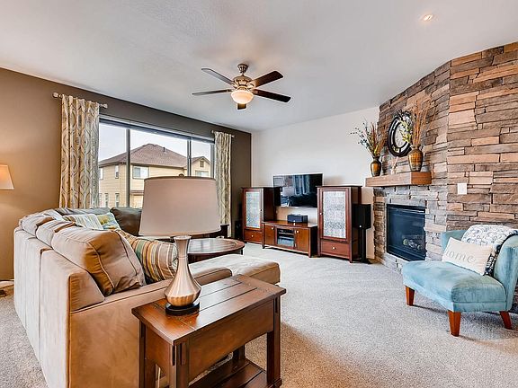 Come see this immaculate home located in the expanding Villages at Riverdale neighborhood! When you open the front door beautiful hardwood floors invite you into the home. Just off the entry is a large office with lots of light. A butler's pantry connects the dining room to the updated kitchen with stunning granite countertops that complement the stainless steel appliances. The kitchen opens to the living room with gas fireplace and flows to the back yard where you can enjoy warm Colorado nights on the deck or stamped concrete patio. The upstairs includes a full bathroom, laundry room, two bedrooms and master suite with 5 piece bath and walk in closet with custom shelving. The basement features a movie theater or game room with a full bathroom and additional bedroom. Three car tandem garage, a gas hook up on the deck for your grill and plenty of space to entertain! Located within walking distance to Brantner Elementary and close to hiking trails, shops, and restaurants.