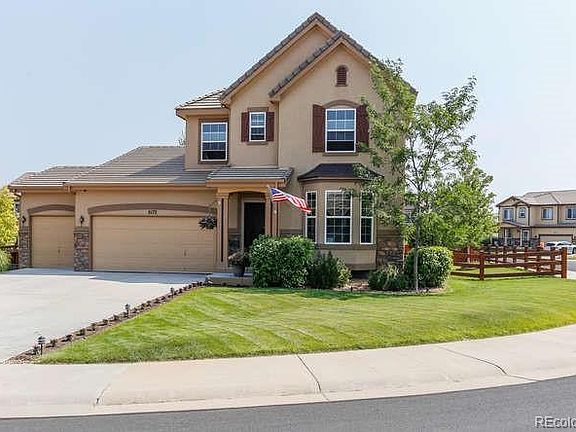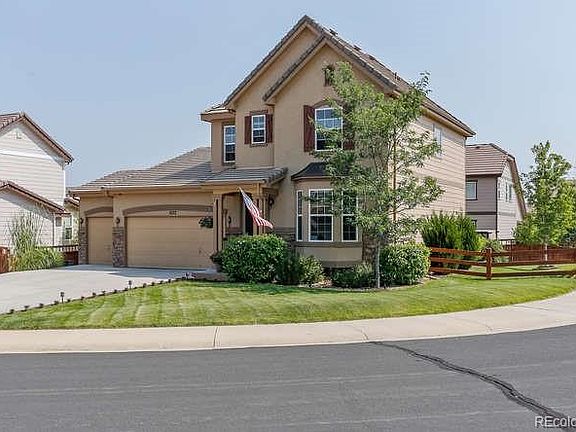 Immaculate 2 story located in Cobblestone Ranch! This home has great curb appeal situated on a corner lot with stucco and brick veneers. A large 3 car garage, the designer kitchen features slab granite, glass tile backsplash, island, walk-in pantry and upgraded stainless steel appliances. The open concept living area includes the kitchen with dining area as well as a large family room with a gas fireplace. The main level has gorgeous Acacia Wood Flooring and a flex room that can be used for an office, formal dining room or game room. The upper level laundry is a plus. The fenced yard has a flagstone patio and garden area. Community features are pool, tennis courts and parks! Douglas County schools and the Cherry Creek Trail.