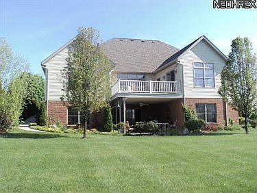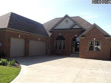 Enjoy this spacious ranch home with an amazing open floorplan! So many custom features-decorative windows, arched doorways, transom portals, tray & cathedral ceilings, can lighting, solid wood doors, brushed nickel hardware & more. Both Foyer & Dining Room have 19' ceilings! The Great Room has a vented gas fireplace with granite surround that matches kitchen counters. Gourmet kitchen with custom Kraftmaid cabinets. Rope lighting above cabinets. Frigidaire stainless steel appliances. Dinette & Sunroom with French doors open to a vinyl deck. Split living with the Master Suite & Master Bath on one side & two additional bedrooms that share a Jack & Jill bath on the other side. A massive lower level that is 3/4 carpeted, 3/4 finished & plumbed for a bath would be perfect to finish a rec room, 4th bedroom with the normal-sized windows and French doors that open to a lower covered patio! Heated over-sized garage is large enough for 3-1/2 vehicles. Surround Sound. Lush Landscaping. Call Sally Goodnow - 330-605-9437 or Carla Groom - 330-353-4318 for a tour!