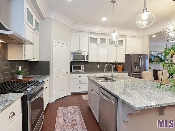 *** Seller to contribute $5,000.00 towards buyer's closing costs OR rate buy down! *** Absolutely darling home in the highly sought after gated University Villas. This home features 3 br 2 bath and just over 1900 living area. Upon entering the home you are greeted with a great open floor plan, 10ft ceilings, gorgeous wood floors and a gorgeous kitchen. The kitchen features an oversized island with granite counters, custom cabinets that extend to the ceiling, subway tile backsplash and lots of counter space! There is a walk-in pantry and also another storage closet just off the kitchen. This home has an office nook with a built-in desk and wall cabinets. The master suite overlooks the wooded space behind the home, the ensuite bathroom is extremely spacious with double vanities, jetted soaking tub, separate shower, water closet + walk in closet. The backyard is fully fenced with a large deck + plenty of grass space for you to enjoy. This home sits next to the green space so there is no one to the left of you. It is also located directly across from the walking path to access the lake. The lake has 3 fountains with a walking trail that leads you to the community pool. The pool is fabulous with view of the gorgeous lake. The home is flood zone X - the neighborhood has a LOMA so no flood insurance is required. You will absolutely love living in this gated community minutes from lsu, dining + shopping.