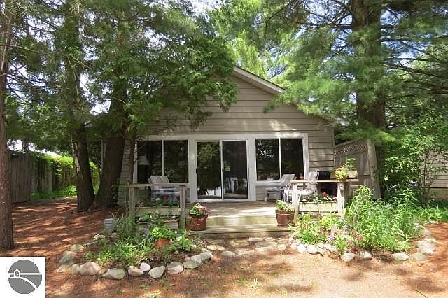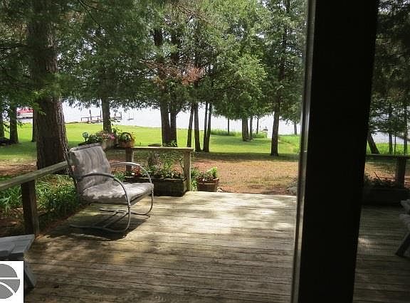 Exceptional Clam Lake home/cottage with solid ground to shoreline to waters edge located about a mile from Torch Lake! Home has cottage like appeal with inside wood walls, four season sun room which opens up to lakefront deck. Detached 2+ car heated garage with adorable studio apartment up above with bath for over flow of guests. Deep lot, metal roof, furnace, water heater & top of line pump back septic system. Tastefully landscaped & so much more! A must see at this price!