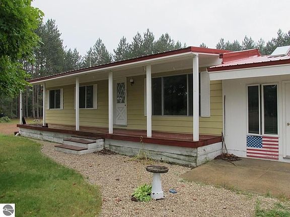 3 Bedroom, 1 Bath Ranch style home with 10 acres of densely wooded pines and hardwoods. Beautiful open floor plan with spacious bedrooms, large kitchen, open living room, family room and bay view windows to let in the natural sunlight. Expansive 4+ car attached garage with storage space above. 12x12 Garden storage shed, covered porch, concrete driveway approach, and on a county maintained rd. Great location close to state land, orv trails and Lake access.