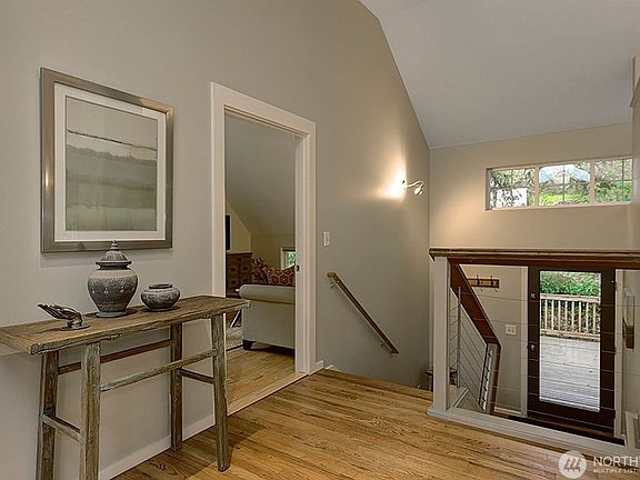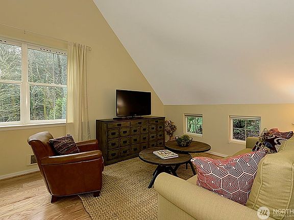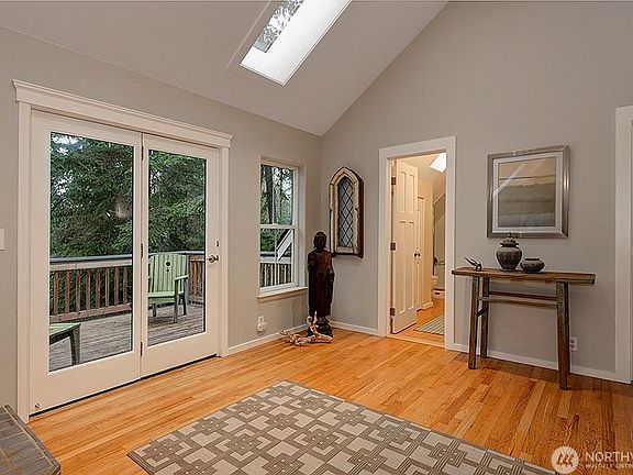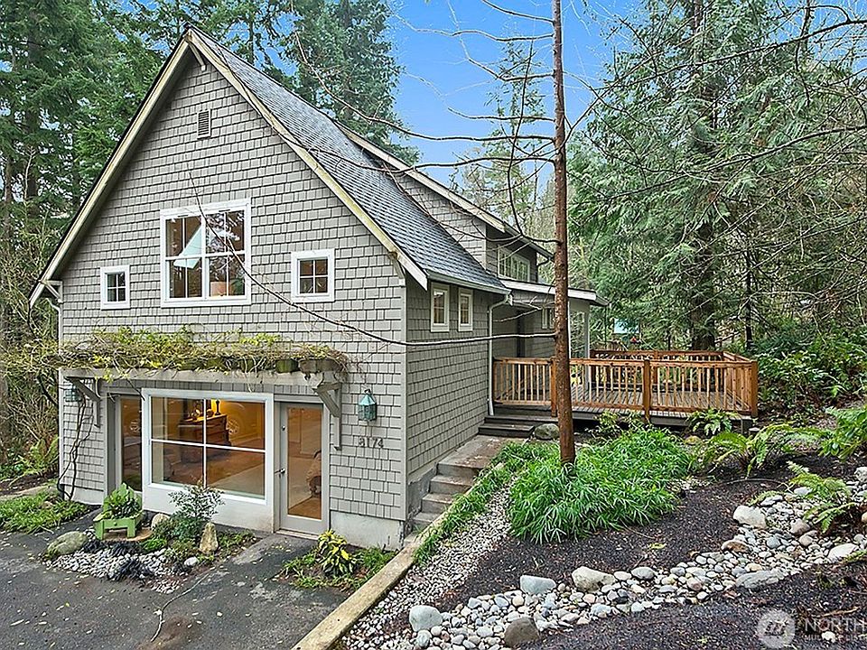 Home for rent on acreage with open plan, contemporary design and tranquil setting. Nestled in native landscape and overlooking a protected ravine, this property sits at the end of a quiet lane in the tranquil Fletcher Bay neighborhood. The site is partially fenced with outbuildings, space to garden and play, and access nearby waterfront via a public road end. Pristine condition with new hardwood floors, and upgraded bathrooms, and kitchen.