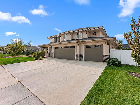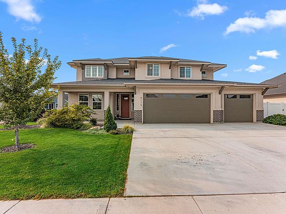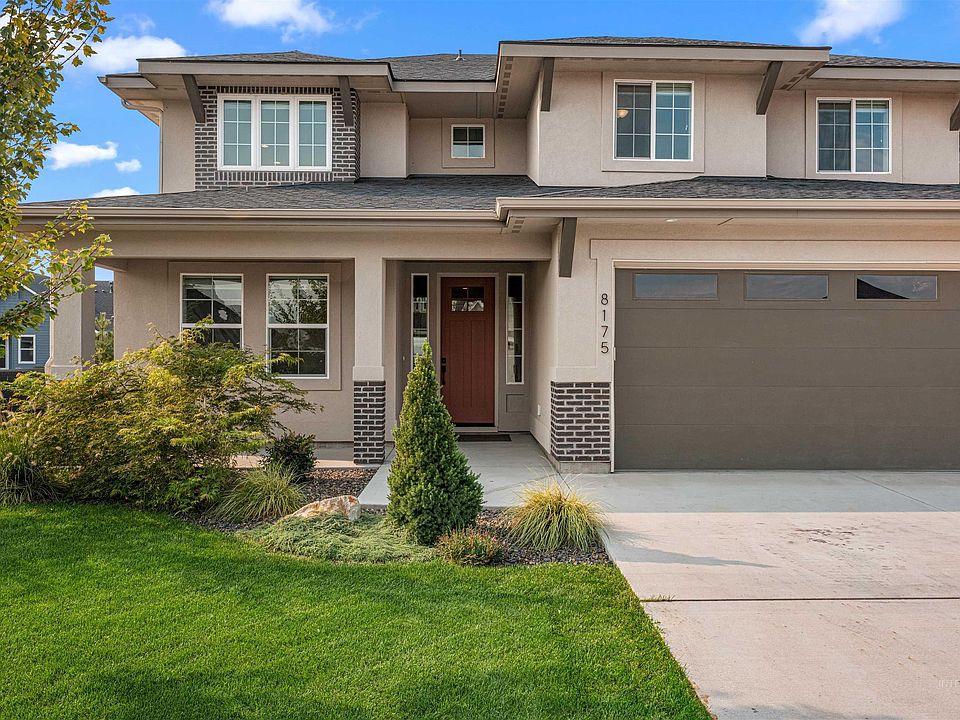 Welcome to this beautiful two-story home perfectly located between Middleton and Star in a nearly new subdivision surrounded by ponds and lush green space. A grand foyer with architectural ceilings opens to an inviting kitchen and great room with a cozy gas fireplace, flowing to a covered patio ideal for entertaining. Off the vaulted entry, a stylish office provides the perfect work-from-home space or 5th bedroom. The kitchen features a large quartz island, Bosch stainless appliances, soft-close cabinets to the ceiling, and a walk-in pantry. A convenient mudroom to keep life organized. The main-level primary suite offers a spacious walk-in closet, glass/tile shower, dual vanities, and a relaxing soaker tub. Upstairs includes a versatile bonus area, a second full bathroom, plus three bedrooms, each with walk-in closet. Engineered hardwood flooring, designer lighting, surround-sound prewire, and central vac plumbing showcase quality craftsmanship—all minutes from Star’s shops, dining, and Middleton schools.