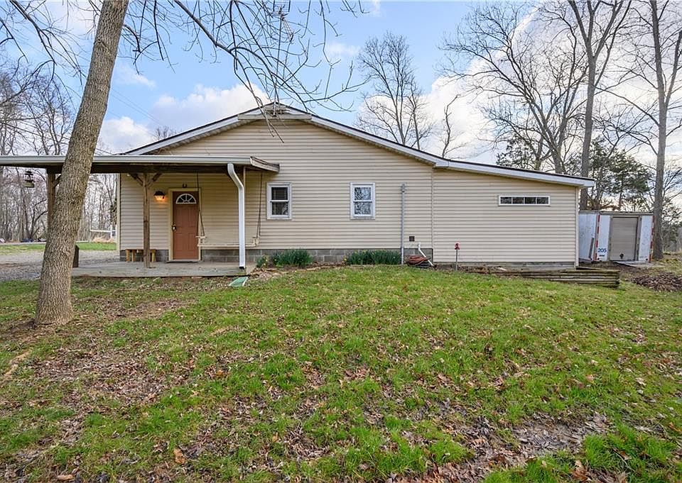 Live in this 1bd/1ba efficiency apartment w/attached oversized garage as you build your dream home on 3 wooded acs. The apartment has an open floor plan, ceiling fan for cooling, baseboard and external wood furnace for heating, and appliances are included. The bedroom and bath addition still need work to be completed. The newer wood furnace is housed in its own building behind the house but needs some electrical updates. The garage is 28x24 and there is an enclosed lean-to for additional storage. The land is rolling w/mature trees and located in a quiet area off a paved road. There is fenced pasture as well as a fenced garden area and animal building. Own a piece of Brown Co for a very reasonable price. Being Sold As-is. Cash offers only.