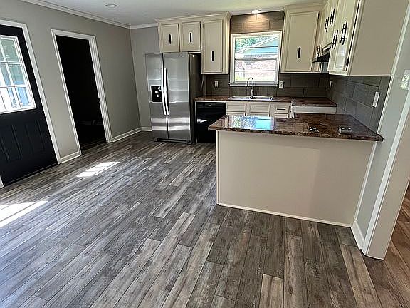 3 bedroom 2 full bath brick home. Completely renovated in 2022. New roof, New luxury vinyl plank floors, new wood plank tile in bathrooms, wood plank tile 4ft x 4ft walk in shower in master bath. New recessed LED lights, skip trowel ceilings, new paint, new baseboards and crown molding, granite countertops, wood plank tile backsplash. Electric heat producing fireplace, fenced in back yard.
