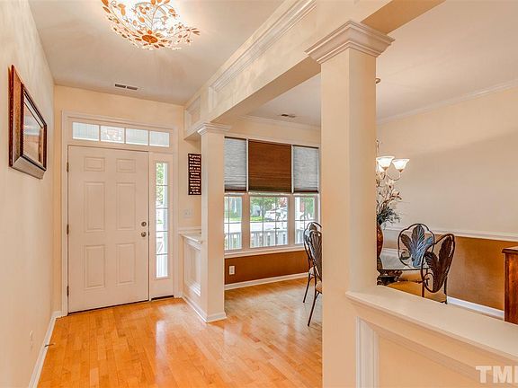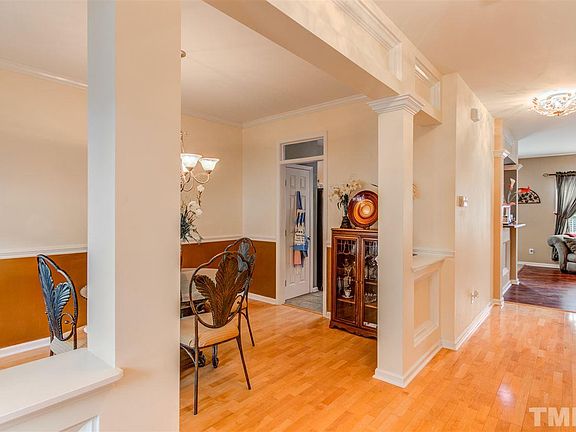 Beautifully well maintained 3 bedroom home w/ rocking chair porch in great northeast Raleigh near 1-540, shopping & dining. Open floor plan w/ 2 story cathedral clg family rm open to eat-in kitchen w/ formal dining room. Great upgrades: stainless appliances, solid surface counters, hardwoods in foyer, dining, living; ceiling fans, window treatments, elegant trim work throughout, Two-tier deck & so much more. Master Suite w/ private bath dual vanities & garden tub & wal in closet! Won't Last Long !!!