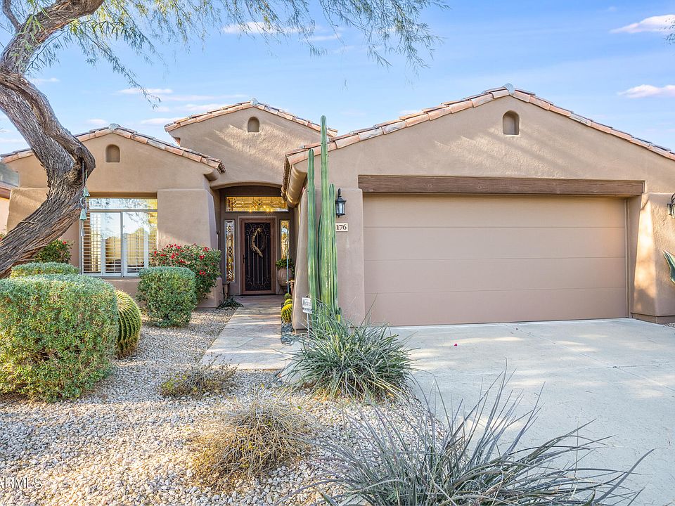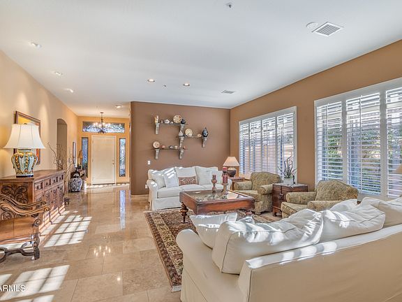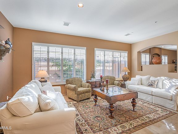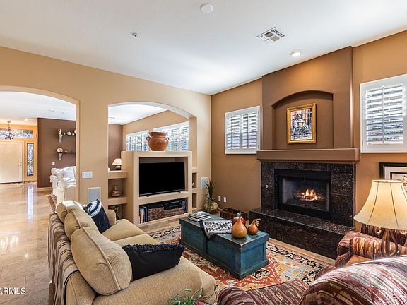 Exclusivity meets luxury in this highly sought-after residence nestled within the guard-gated enclave of Crown Point at Grayhawk. Boasting 3 bedrooms and 3 baths, this upscale southwest home is immaculately maintained with polished travertine floors, plantation shutters, and an epoxy-coated garage with built-in cabinets. The private backyard oasis features a covered patio, built-in BBQ, kiva fireplace with bunco seating, and a sparkling waterfall spool amidst stunning landscaping. This residence epitomizes the pinnacle of southwestern luxury living, providing an exclusive lifestyle in the heart of Grayhawk. Don't miss the opportunity to call this stunning property home.