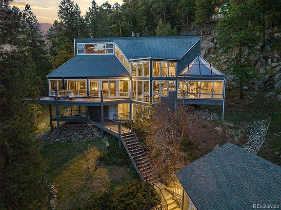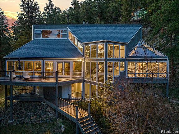 Get ready to have your breath taken away at every corner of this awe-inspiring property on 10 acres in Morrison, Colorado! This property is the definition of mountain living. The residence boasts 3 bedrooms and 2.5 baths as well as a multi-functional loft, providing an incredible space to relax and soak in the surroundings or convert into an office, library, or artist’s retreat. The unique layout, with natural wood beams and many angles imbue this home with a captivating treehouse ambiance and abundant character. The expansive floor-to-ceiling windows bring the splendor of Colorado's outdoors within the walls of your home. There are multiple outdoor decks designed for leisurely enjoyment and entertaining in any season. The open kitchen is equipped with double ovens for the seasoned chef, and ample counter space, combining utility with aesthetics. The primary suite offers a spa-like bathroom and lofted area which could be perfect for your morning sun salutation. A generous three-car garage serves the dual purpose of vehicle safety and storage space, with ample room for a workshop corner - a great feature for DIY enthusiasts. Don't miss the incredible custom-built green house, a fun and versatile space with endless possibilities, from cultivating your favorite plants, to work shop, to party room! And if you're the adventurous type, take a hike up the back of the property to experience the jaw-dropping views from the "sky deck". The land has been extensively fire-mitigated. This is not merely a house, but a lifestyle offering – a place to surround oneself with nature's beauty and yet still be close to it all. Located only 35 min from Downtown Denver, 50 min from DIA, 17 min to Littleton Costco, 17 min to Red Rocks, 12 min to Conifer King Soopers, and 1 hour to A-Basin Ski Resort. Since 2009 the sellers have lovingly called this place "home", but now, it's your turn. VIEW THE PROPERTY VIDEO HERE: https://youtu.be/wLc6XRRGHM0