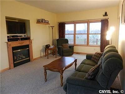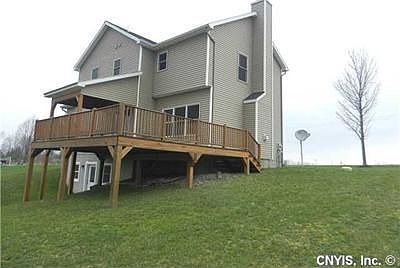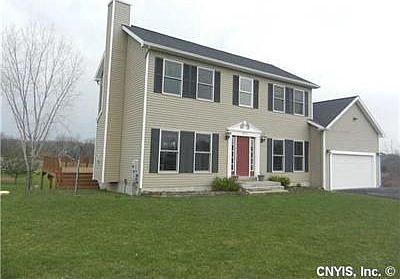 Top quality construction in this stunning colonial situated on 2 acres with panaromic view of countryside. Gracious living room features gas fireplace and a formal dining room to entertain family and friends. Eat-in kitchen has large pantry, breakfast bar and sliders that open to a huge covered deck where you can enjoy magnificent sunsets. A full walkout basement provides many options for expanded living space. The perfect home with public water in Weedsport School District.