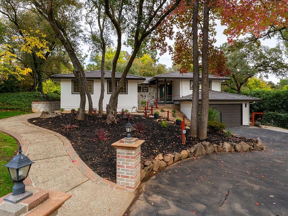 Welcome to Lakeview Hills in Granite Bay where privacy, nature, and modern luxury meet. This fully remodeled 4 bed, 3 bath home sits on a spacious 0.74 acre lot and offers exclusive community access to a private lake plus direct access to Folsom Lake's trails and recreation. Inside, enjoy luxury laminate flooring, two inviting living spaces, and a beautifully redesigned kitchen featuring sleek white cabinetry, quartz countertops, custom tile backsplash, and high-end appliances. The main-level primary suite is bright and spacious, while the downstairs level offers incredible flexibility perfect as a second primary suite, guest quarters, or potential independent living space with its own bedroom, living area, and bathroom. Surrounded by mature trees and open grounds ideal for entertaining or simply enjoying the quiet, this home blends comfort with a resort-like lifestyle. Close to top-rated schools, shopping, dining, and outdoor activities this is Granite Bay living at its finest.