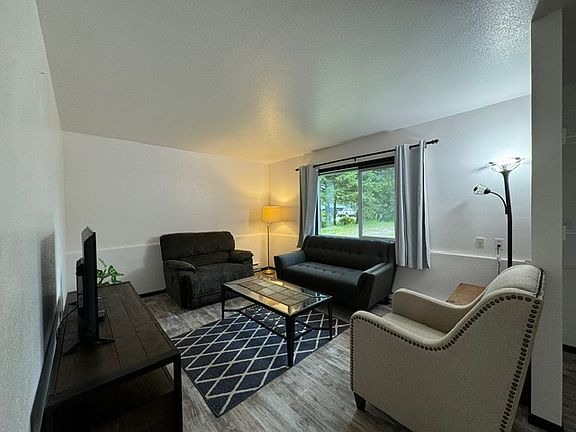 Available Now. Mendenhall Valley near glacier, furnished 3 BD, 1 BA lower apartment in a duplex. It has a king bed, full bed and twin bed. Rent includes water/sewer, trash. Tenant pays electric heat, snow removal, internet (if desired). No animals, no smoking on the property. $2200 month for 12 (or longer) month lease; $2200 Security Deposit Completed and reviewed application required for showings.