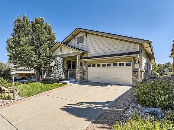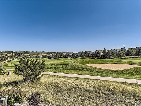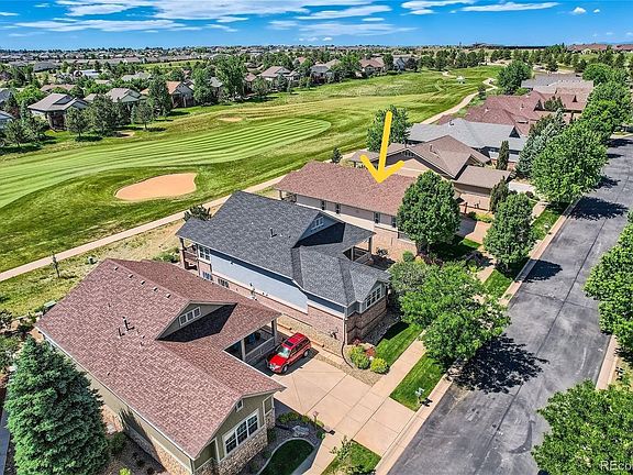 A rare find in a prime location on the second fairway at Heritage Eagle Bend. See the view from the back deck of this home with this link ~ https://www.youtube.com/watch?v=JF2L3nmgepA Start living your Colorado golf and leisure lifestyle in this 45+ resort style gated neighborhood. This ranch plan has many upgrades which make the home wonderfully custom. While sitting on the expanded and covered front porch you can enjoy the landscaped front yard with custom retaining wall and lush landscaping. Come inside to the upgraded home office with French doors and hardwood floors, this can also be a third main level bedroom. The open floorplan is meant for entertaining. The hardwood floor kitchen has a large custom island with seating and a bar height wrap around counter. The dining and living room are full of natural light and provide you with daily views of the golf course. The living room has surround sound! The primary bedroom looks to your golf course backyard and is detailed with a tray ceiling. The en-suite bath has a walk-in shower and soaking tub along with dual sinks and a custom raised vanity with seating. The large second bedroom has a walk-in closet. The second full bathroom completes this main floor living home. You will find yourself on the expanded and fully covered composite back deck taking in your daily relaxing rituals. There is a flagstone patio with a sitting bench for added opportunities to relax and stargaze at the expansive sky. The backyard is landscaped with a drip system. This home is upgraded with 36" wide doorways throughout. There is a whole house fan. A new whole house humidifier. New water heater in 2021. New roof with impact resistant shingles August 2024 with a 5 year transferrable warranty. Amenities; the Eagles Nest full service restaurant and patio, state-of-the-art gym, indoor pool and hot tub, an outdoor pool, tennis and pickle ball. Golf leagues and many social clubs. DIA 15 minute access on E-470.