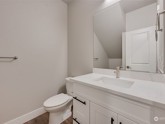 North Facing New construction in a great location close to schools, shopping, and freeway access. Extensive waterproof LVP flooring, quartz counters with full height backsplash in kitchen, quartz bathroom counters, and HUGE YARDS with no maintenance turf and cedar fencing This home is move in ready. The primary bath features a dual quartz vanity with a tile shower and soaking tub plus a walk-in closet. No common elements and only attached by small section of the garage. Don't miss this amazing home in a wonderful South Everett location.