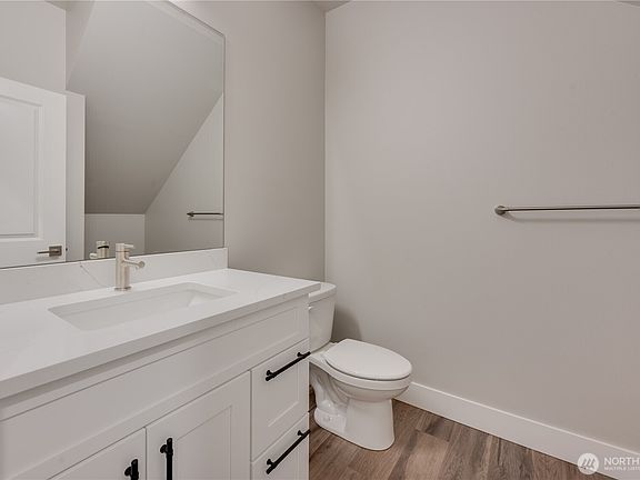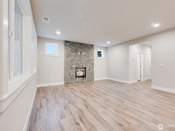 North Facing New construction in a great location close to schools, shopping, and freeway access. Extensive waterproof LVP flooring, quartz counters with full height backsplash in kitchen, quartz bathroom counters, and HUGE YARDS with no maintenance turf and cedar fencing This home is move in ready. The primary bath features a dual quartz vanity with a tile shower and soaking tub plus a walk-in closet. No common elements and only attached by small section of the garage. Don't miss this amazing home in a wonderful South Everett location.