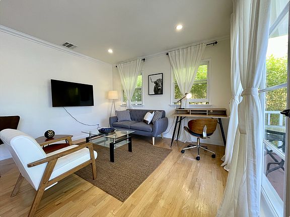Absolutely beautiful 1 bedroom/ 1 bathroom upstairs apartment located in a small bungalow court Large balcony overlooking lots of greenery Very bright unit with lots of windows and tons of natural light One set of steps to the front door Beautiful landscaping/lots of green Property features pomegranate trees, fig trees, lemon trees, plum trees... the list goes on! Steps away from Montana Ave--right across from Sweet Lady Jane! Hardwood floors, granite countertops, stainless steel appliances, tumbled marble bathroom Lovely shared backyard Washer/dryer in unit Walking distance to all the shops, cafes, & restaurants on Montana Ave Water/sewer/trash included. Tenant responsible for gas & electric. Pet friendly. 1 yr lease. No smoking. Water/sewer/trash included. Tenant responsible for gas & electric. Pet friendly. 1 yr lease. No smoking.