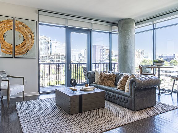 - Exterior features: 10-16 Foot Ceilings, 19th Floor Skylounge, 50, Bicycle storage, Concierge, Convenient Retail Parking, Deluxe Wine Chiller*, Designer Finishes-Two Packages Offered, EV-Charging Stations, Expansive Private Terraces-Up To 555 Square Feet, Exposed Concrete Ceilings, Columns and Walls*, Fiber Optic Video and Internet, Floating Bathroom Counters, Internet Cafe with Coffee Bar, Kitchen Island *In Select Units Only, Onsite Retail, Package Receiving, Pet Friendly with Dog Wash, Premium Stainless Steel Appliances, Private Conference Rooms, Private Yoga Studio, Recording Studio, Rooftop Performance Venue with Stage, Smart Lock Technology *Select Units Only, View Type: 180 Degree Unobstructed Panoramic Views
