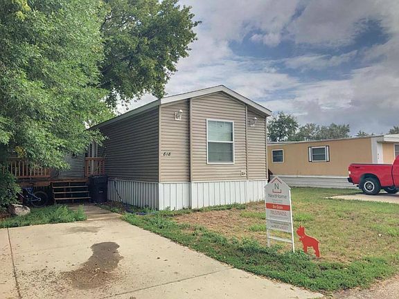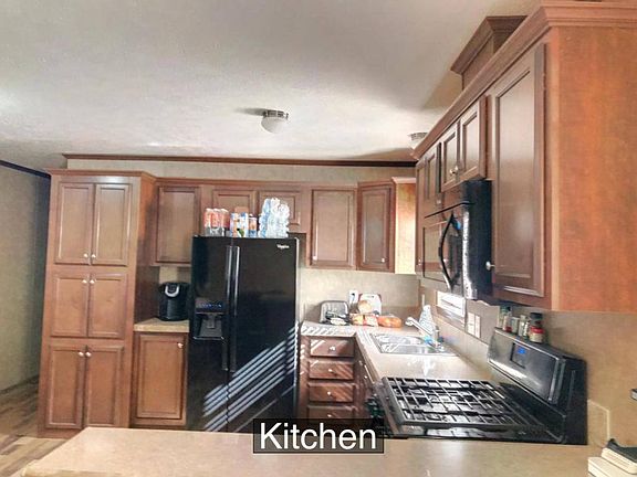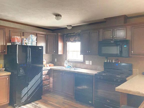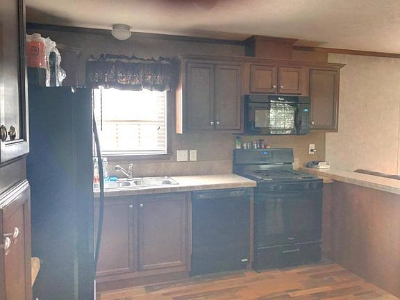 Enjoy the large deck on this 4 bedroom, 2 bath mobile home with master bedroom with full bath and kitchen with lots of cabinets.