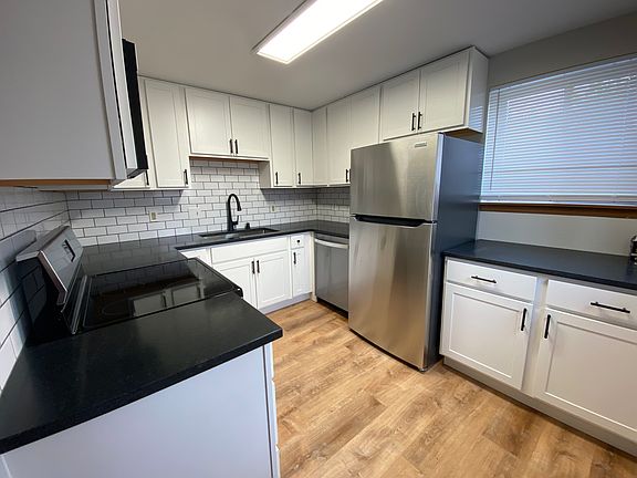 Amazing 2 bedroom, 1 bathroom apartment in Cheney. Amenities included: dishwasher, stainless steel appliances, updated kitchen, updated bathroom, and washer dryer. The unit is a complete rebuild and a top unit, the photos shown in another with the same layout, floors, paint, and appliances. This unit will be complete in 2 weeks. Utilities included: water, sewer, garbage. This building is not pet friendly. Date Available: Sep 1st 2025. $1,150/month rent. $1,150 security deposit required. Owner pays for water, sewer, garbage. Renters are responsible for electricity. Deposit due at signing. One parking spot in lot per apartment. No animals or smoking allowed. Income requirements negotiable for EWU students.