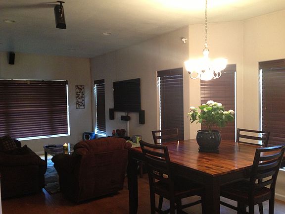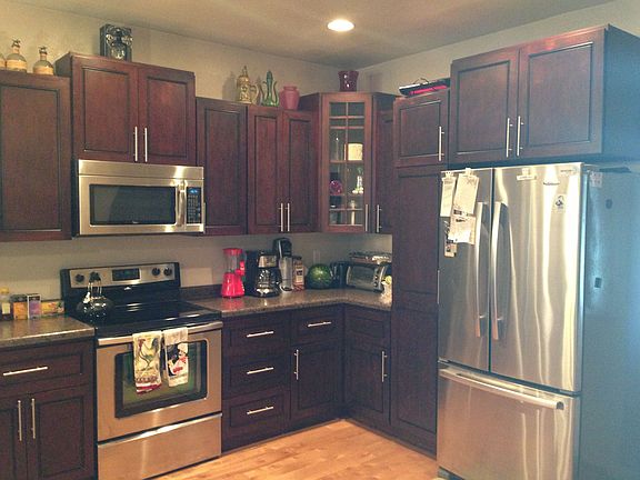 2400 sq ft Four bedroom and 3 bath fully finished house. Hardwood floors in upstairs living room and kitchen and in the wet bar/mini kitchen downstairs with beautiful dark cherry cabinets and stainless steel appliances. Steel beam frame construction with blow in foam insulation and double pane Argon filled windows throughout the house. for a all around well insulated house, reducing heat and air conditioning costs. The master bedroom is carpeted and designed perfectly for a california king bed between two windows, walk in closet and a beautiful tiled bathroom with a walk in tiled shower and dark cherry cabinets. Three bedrooms, perfect for kids rooms, guest room, or an office. Downstairs Living area has a perfect set up for a movie night and a flawless transition to a bamboo hardwood floor with a sitting bar area, stainless 24� sink and dark cherry wood cabinets. The two other bathrooms have the same beautiful tile as the master with tub/shower combos. Built in laundry room with washer and dryer and shelving. A storage area under the stairs and a utility room. Lots of yard space to throw the ball around or enjoy the few months of sun and a 28x28 ft garage, which is an additional 784 sq ft with a partially finished interior. Fully electrically wired with a 220 V line for welding. Motion sensor lights on the front of the garage.