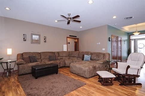 Great curb appeal! The exterior has rich brick accents that are illuminated with recessed lights. The interior boasts attractive wood laminate flooring, 9 ft ceilings, a cozy gas fireplace, custom kitchen cabinetry, paneled doors, ceramic tile and more. In floor, hot water heating system featuring six zones plus a engineered safe room. The garage is also heated for another added bonus! This quality built patio home has everything all on one floor. Don't miss it!