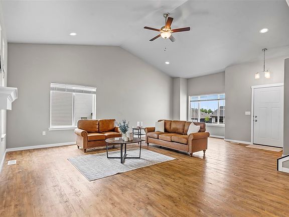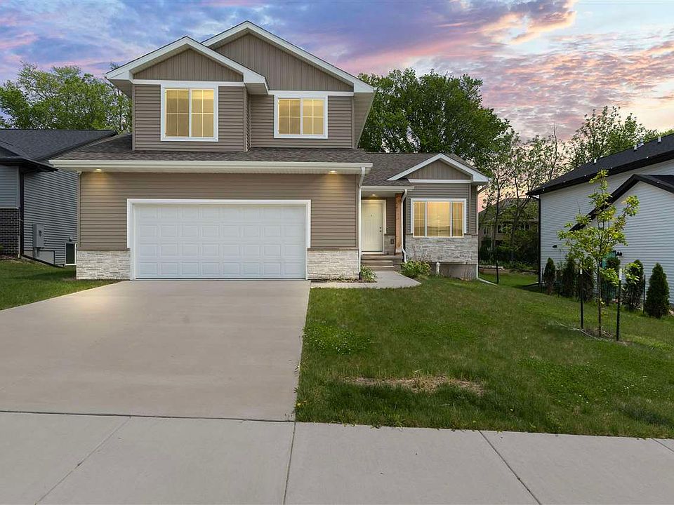 This spacious 4-bed, 3.5-bath home boasts an open floor plan with neutral colors throughout. The kitchen features a big island with quartz countertops, stainless steel appliances, a built-in desk, and a big pantry. The hood vent for the stove vents outside. There is also a first-floor laundry room. All bathrooms have upgraded shower doors, and the large great room has vaulted ceilings and a built-in gas fireplace. The master bedroom has a vaulted ceiling, huge walk-in closet, and a master bathroom thats fully tiled. The fully finished lower level includes a family room, 4th bedroom, 3rd bathroom, and more storage. The home has separate heating zones for the lower level and main floor. The deck outside features a gas access line for your grill. Conveniently located near shopping, schools, and bus lines.