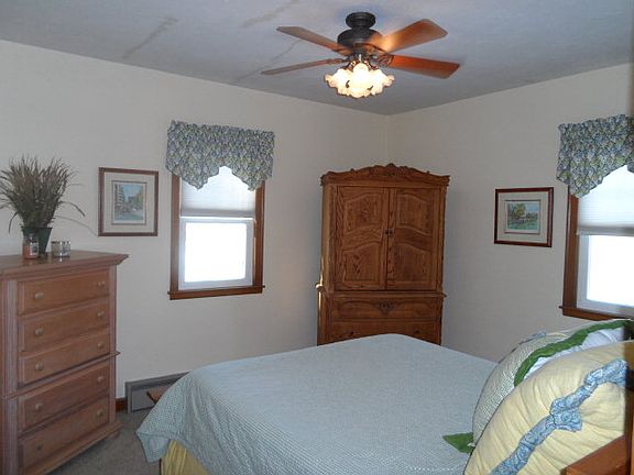 Home features vinyl siding, Pella windows, & a dream kitchen with custom cherry cabinets, Corian countertops, tile backsplash, stainless steel appliances & a Viking stove. 2 laundry areas, finished basement has family room with Hearthstone stove & surround sound, game room with wet bar, office, bath & laundry. 2 car garage plus 8x10 utility bldg. Yard has U/G sprinklers & vinyl fenced yard.