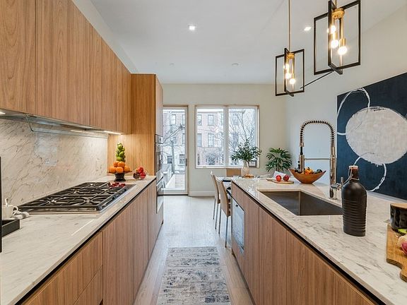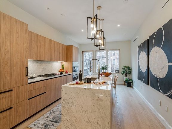 Welcome home to this inviting new construction fully rebuilt four story 3600 sq ft Townhouse which is perfectly located within close proximity to NYC via Ferry, PATH or Bus. The garden level entertainment space leads into the spacious backyard from the folding walls of glass doors as well as access to the yard from the eat-in kitchen on the main level. The extraordinary kitchen features fine Italian cabinetry by GD Arredamenti, Wolf/ Subzero appliance package, vented kitchen hood and wine cooler. The stunning oak wood floors in large 7 1/2" planks, manufactured by Listone Giordano, are one of the finest in Italy. Each bedroom features its own en suite bathroom. The master bath is a five fixture with wet area. Another special bathroom aspect is the master bath tile by Bianco Dolomiti Marble in a Herringbone pattern and the Secondary Bath Tile by Statuarietto Marble, both premier Italian marbles truly elevate these spaces. Bathroom fixtures by Kohler, interior doors by REEB and handles and hardware by high end brand Emtek and to top-it off, you will enjoy the oversized Lincoln Windows off the private rear of the home for an abundance of light and calming garden views. This home sits behind classic repointed brick façade, cornice, and brownstone stoop and on a brand new concrete foundation, brand new steel joists and full sprinkler system for safety that will help reduce insurance costs. Additional features are, 10' ceiling heights, dual zone HVAC System with linear diffusers, closet space galore, vented dryer and of course, location, one of the most desirable blocks in town with easy access to Hoboken's best: world-class shopping, dining, entertainment and one of THE most dramatic waterfronts. Rental parking available nearby!!
