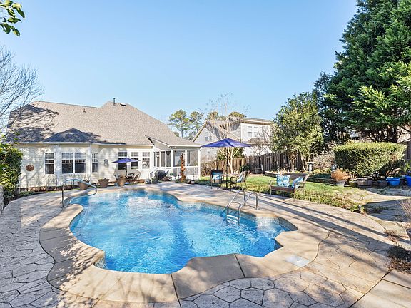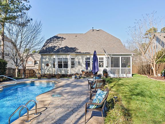 Beautiful pool home in Fuquay Varina just mins to downtown! Gorgeous flooring! Chef's kitchen with granite counters, gas stove, tiled backsplash and lots of room to cook and entertain! This home is a lifestyle with the spacious screen porch, patio, fenced yard and pool with fountain jets on the pool deck! You will love the gorgeous fire pit tucked perfectly away for marshmallow roasting and relaxations! Outside shed and raised deck for even more outside seating! 1st Flr Owners Suite with soaking tub and WIShower! Spacious Living Room looks over the back yard with lots of natural lighting! Formal DR & Flex space too!! Nicely sized loft area for playing games or a reading nook! Bedrooms 2, 3, & 4 are on the 2nd flr where there is also all new carpet! There is even a craft/hobby room! Lots of closet space throughout and a large walk out attic! This home even has irrigation in all grass areas which is perfect for watering all of the stunning plants throughout! Recent clean termite inspection too! Community Pond and walking trail! Come see this home, you will be so glad you did!