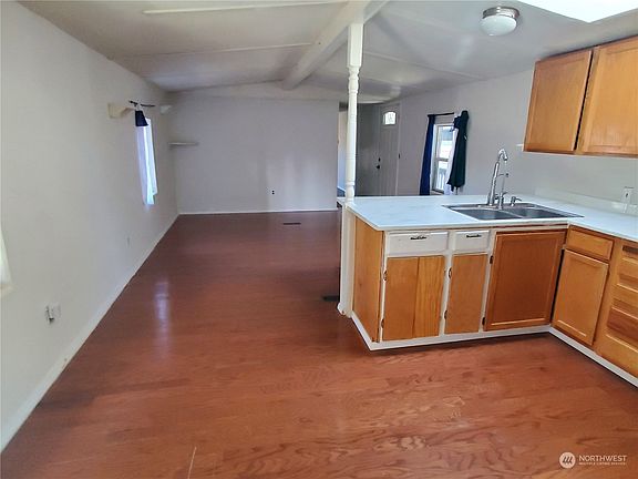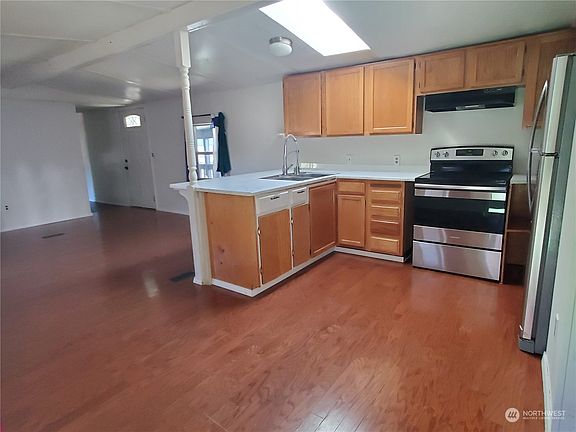 Welcome home to this beautifully maintained 3 bedroom 2 bathroom mobile home in a quiet neighborhood. This home is centrally located in the heart of Olympia, very close to Pacific Ave just down the road from the I-5 exit 107 making commuting and shopping a breeze! Squaxin & Watershed parks are both pretty close by as well! The interior features include skylights, stainless steel appliances, hardwood floors, an updated bathroom, and laundry machine hookups.