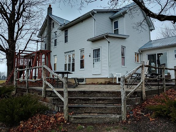 Space Abounds in this Farmhouse with attached additional living quarters. Tastefully updated and nice inside and out! Multiple Outbuildings include a 80x40 Barn, Concrete Chicken Coop and 3 Bay Garage with Carport. You enter into a fantastic foyer/mudroom complete with a hand washing sink and plently of space as this room adjoins the 2 living spaces and access to the basement nicely. Enter Home #1 and you find a 1 Bedroom/1 Bath efficiency style living quarter with a deck and ramp. Enter Home #2 and enjoy large spacious rooms with Hardwood and currently gas lights. There is electric that is available but needs to be hooked up easily. Large Kitchen, Living Room and all the bedrooms are of unusually large sizes. Upstairs also has a full bath. This farmette is ready for animals & country life