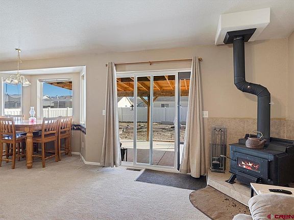 Come home to this four-bedroom home on a cul-de-sac one block away from a large park within the subdivision. Cozy up this winter with a wood stove, and in the warmer weather, relax and unwind in your fully fenced, large, private backyard under a large covered patio completed in 2023. The main bedroom has two closets and an en-suite. New roof in 2018, all newer kitchen appliances, new central air unit 2019, ceiling fans in all bedrooms and living area. You feel like you live out of town but are close to shopping, Montrose airport, and schools. Seller is offering $5,000 in concessions.