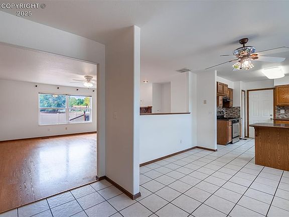 Welcome to this beautifully home located in Florence—just a short walk to the local park! Fresh interior paint gives the home a bright and inviting feel from the moment you step inside. The spacious floor plan features a warm living room with a cozy brick fireplace, perfect for Colorado evenings. The kitchen is equipped with ample cabinet space, tile backsplash, and a convenient breakfast bar that opens to the dining area. Large windows fill the home with natural light, showcasing the open and airy feel throughout. This home offers comfortable bedrooms, including a private primary suite with en-suite bath and walk-in closet. A versatile bonus room provides additional living space—ideal for a home office, sunroom, or playroom. Step outside to enjoy the xeriscaped yard with vinyl fence, mature trees, and a low-maintenance trex back deck designed for relaxing or entertaining. The oversized driveway and attached garage provide plenty of parking and storage. All of this is tucked into a quiet, established neighborhood within walking distance to parks and just minutes from historic downtown Florence with its shops, dining, and events.