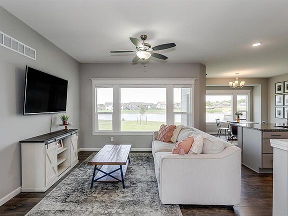 Better than new, this split bedroom ranch with neutral decor offers a layout that is perfect for entertaining with an open floorpan. You will love the gorgeous front door and covered porch with decorative columns. The stunning kitchen offers solid surface granite counters, a LARGE island, premium upgraded gas range, high end dishwasher and space saver microwave that remain, terrific walk-in pantry for ample storage. The flooring in the living areas is a upgraded beautiful carefree premium vinyl plank. Expansive windows with upgraded trim package overlook and custom window treatments (they remain but are stored up in the photos to showcase the lake view) the lake for tranquility and space and currently there are no additional lake lots available so this is a special opportunity. The master bath has a desirable adult height double vanity and a tiled indulgent walk-in shower. The basement offers great expansion possibilities with a future family room and rough-in for the bath and bedroom options. HVAC, HWH, and windows are under manufacturer warranties given they are less than one year old. Finally, this home will be in the new Stone Creek Elementary attendance area but Stone Creek Elementary is not currently included as an option for me to choose in the MLS program.