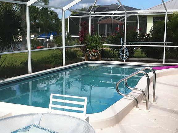 Direct Access, South Exposure, 7,000 pound boat lift and Solar Heated Pool is everything you need to enjoy living in the Yacht Club neighborhood. A clean and neat home with new AC in 2015 and new roof in 2011. An open great room with sliding glass doors across the living room to enjoy the waterfront views and the pool area. There is a galley style kitchen with breakfast bar and updated appliances, there is an inside laundry too. The largest bedroom has a bath that opens to the pool and there is a 1/2 bath from the garage that leads to the pool area too. Your travel time to the river is quick and you can bike or walk to the Cape Coral Yacht Club Beach, restaurant and fishing pier. Ready for a new owner and a new home for your boat. Agents please read confidential comments