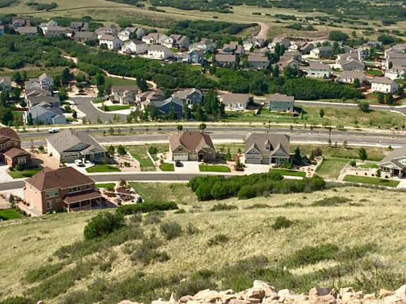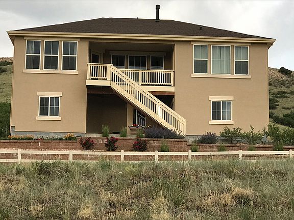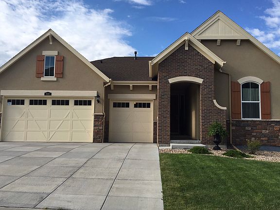 Beautiful, like new, stucco and stone ranch home sits high on the edge of Quarry Mesa with unbelievable big sky and front range views from almost every window. Located across from open space with walking, hiking and biking trails where you can enjoy incredible front range, Pikes Peak and city views. This special home in Taras Ridge has a wide lot with open space on three sides and is located near Rhyolite Park. Many builder upgrades and special features include coffered ceilings with architectural trim, additional hardwood flooring, 8 ft doors, $20,000 stucco exterior, extra large 3 car garage, a 2500+ sf unfinished lower level walkout with 9 ft ceilings (also with amazing views), two hot water heaters, central humidifier and rough in plumbing. This well built home is perfectly situated on the street to take advantage of southern solar gain energy savings and ís a flexible design that accommodates multigenerational living if desired. When you enter the home, a stunning architectural entry creates a smooth transition from the front door to the main living areas. There are 10-12 ft ceilings throughout, with four bedrooms and three full baths on the main level with a laundry room accessible from the master bath closet. This home includes a convenient mudroom entry off of the garage and multiple spacious storage closets. The bright, open concept gourmet kitchen includes all appliances, a huge island, tall cabinets, large dining area, walk-in pantry, gas cooktop and double ovens. There is a large room off of the kitchen that can be used as either a formal dining room or an office with beautiful views of the Sleeping Indian Butte. The open great room has large windows with amazing front range views and a statement fireplace next to an entertainment wall with built in speaker wiring. The lovely covered patio off the great room and dining area was built with Trex decking and is the perfect spot to enjoy Colorado’s beautiful weather and scenery. The master bedroom (not pictured) is a good size with large windows, breathtaking mountain views and access to the covered deck. The huge 5 piece master bath has an extra large double granite vanity and soaking tub, and the well organized walk-in master closet has a custom closet system with both open and closed custom storage. All south facing windows have invisible, new, professional state of the art window film to prevent UV ray damage to furniture and hardwood floors. High end Restoration Hardware linen curtain panels in the living and dining areas frame the gorgeous views. Professionally landscaped in 2014 with automatic sprinklers, drip system (including flowerpots) a garden, and fruit trees. Shows like a model, very competitively priced per sq ft compared to other homes in Taras Ridge. Realtors: Will pay buyer agent standard commission. We already have a realtor, so please don’t contact us to list the property with you. Please text if possible.