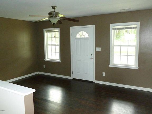 Beautiful, long covered front porch. Laminate flooring greets you as you walk in and continues into the kitchen and dining area. There are bi-fold doors off of the dining area that open to the washer and dryer hook-ups. The kitchen has matching stainless steel appliances including refrigerator, glass top range, microwave, and dishwasher (island in the photo does not stay). The master bedroom is located off of the dining area and has its own on-suite bathroom. The door in the kitchen leads out onto a patio in the 1.86 acre fenced in backyard. Curently listed with and Brokered And Advertised By: Realty World Today Listing Agent: David & Jo Zelinski