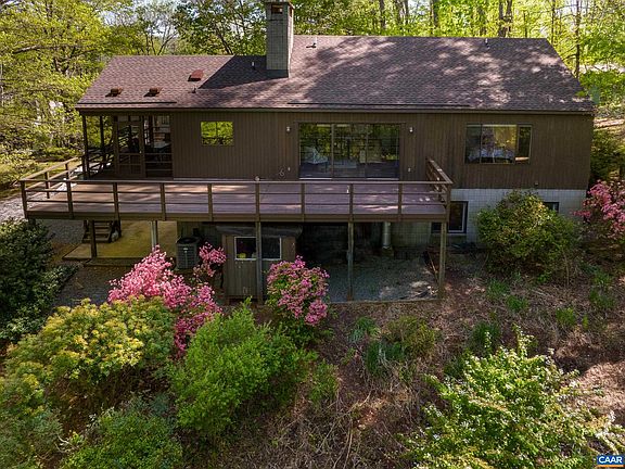 WOW!! You want views?? This is the place! AND it's been updated inside and out! You will feel like you're vacationing at home, yet it is only minutes from Charlottesville and Crozet! Floor to ceiling windows with mountain views greet you as you enter this charming home in western Albemarle! With a new roof, updated kitchen, and low maintenance LVT flooring this home is move-in ready! Main level features a spacious great room with built-ins and wood burning fireplace, open dining room and remodeled kitchen with modern cabinets, quartz countertops and stainless appliances. Entertain outdoors on the expansive deck and screened in porch. The owner's bedroom is located on the main level for convenience and features a private bathroom with two vanities and a soaking tub. Lower level has two bedroom/home office spaces, a full bathroom, large laundry room and workshop/utility room.