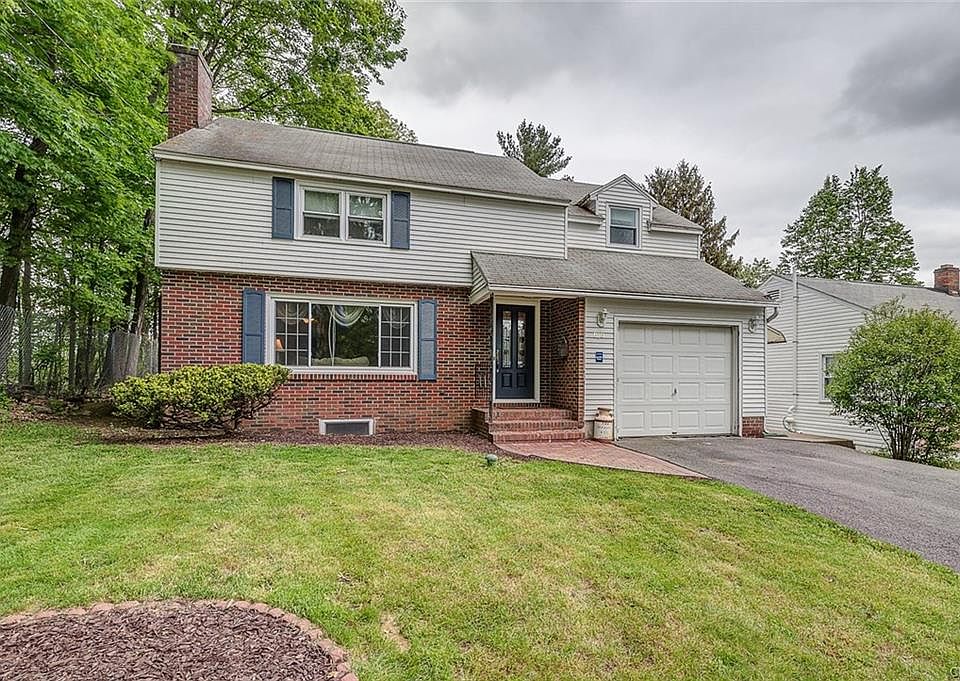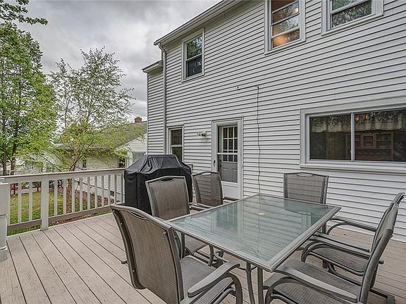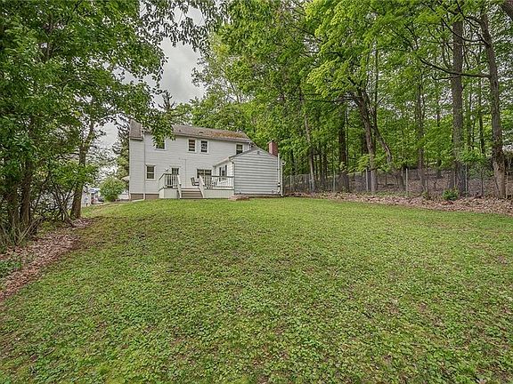 Welcome home! This beautiful colonial has 3 nice size bedrooms, 1 and a half baths that have been updated, including the ceramic tile, and hardwood floors throughout. The living room has a wood burning fireplace, the family room has a gas fireplace. New Comfort windows throughout, new front door and a nice new deck out back/ This house also has a water proof basement with a transferable warranty that is partially finished with a bar. The kitchen appliances have been upgraded to stainless steel. New carpeting was installed up the stairs 5/18. New hot water heater 2006. This house has central air to insure you have a comfortable summer. This house was also insulated in 2014. Enjoy this semi private lot, as you are the last house at the top with no neighbors on one side.