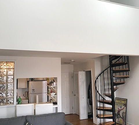 No Broker Fee....Hoboken Duplex 1 bedroom-1 bath in Elevator Bldg. on 8th & Jefferson with 1 parking spot included and Large Terrace with NYC Views....video tour available....kitchen with dishwasher...Central air....25 foot ceilings with skylights.....big living room, leading out to the terrace.....spiral staircase up to the bedroom with big closets. Gym and laundry in the building. Extra storage in basement. Michael Petrak, Liberty Realty.