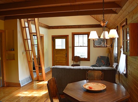 Very Affordable & very cute. Just down 2 blocks from Lake Mary & Assoc park. Home is well cared for. Wooded areas on two sides. Features 2 full baths, one w/ a skylight, ceiling fans, plus a woodburning stove. Spacious LR/DR/Kit combo with hardwood flrs. Window Ac incld. Nice master with a full master bath & walk in closet, patio doors to private deck. 2nd bdrm has no closet. Lar loft with 2 skylites. Ldy area & 2nd full bath w/ shower. Off the front is a large 3 season room. 1 car gar for ample storage or car. Furnace 2017, Hot water heater 2015, Roof 2016. Outside & inside painted 2108. Deeded access to Lake Mary Assoc fee $75 per yr, boat slip is $125. tax bill inclds refuse & recycle of $175.31.