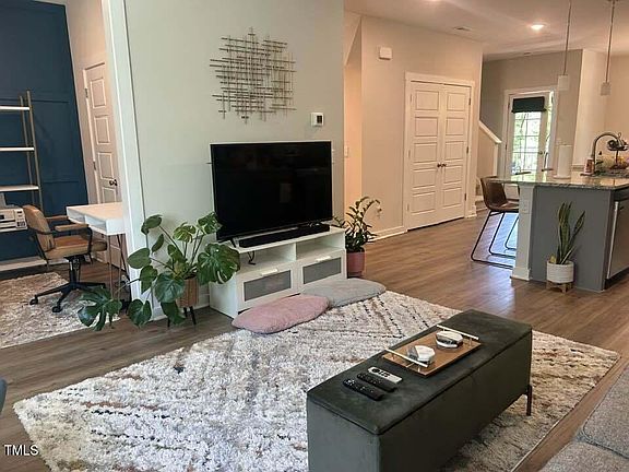 Awesome location! Walk to downtown Wake Forest, the library, post office & parks! Near Wegmans & shopping! Open modern floor plan w/ tons of natural light. 2-tier cvrd deck, LVP flooring, gas range, custom touches include coffee bar w/ open shelving, blinds & custom drapes. Freshly painted. Home backs to woods, large walk-in shower, HUGE garage, designer lighting & upgrades, 1Gb Fiber internet & 4 cat5 drops. Washer & dryer included. HURRY!