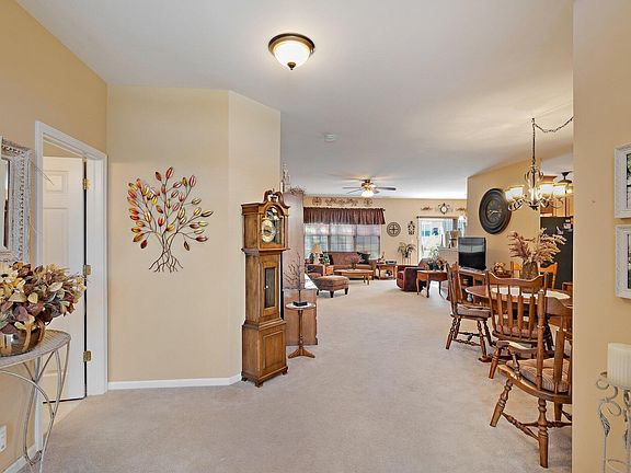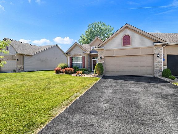 This totally maintenance free 2 bedroom 2 bathroom paired cottage all on one level is ready for you to move right in! The big bright eat in kitchen has tons of cabinets and counter space and is the perfect spot to enjoy your morning coffee. Or step out to your patio and enjoy the landscaped property! All appliances stay with the home so it is ready for you! The living room/dining room is huge and totally open with so many possibilities as to how to use the space. The primary bedroom has a large walk in closet and attached bathroom with walk in shower. The generous sized second bedroom is right next to the full bathroom. The laundry room is off the kitchen and takes you to the 2 car attached garage. The garage floor has been epoxied and there is a large storage closet for all of your extra things! Low taxes and close to shopping and dining, this place has everything!