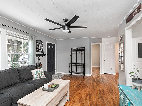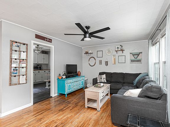 LOOK NO FURTHER! Very nice updated 3 bedroom, 1.5 bathroom home! NEW roof 2020 and new garage door! Hardwood floors in living room, hallway and bedrooms. Large eat in kitchen with nice cabinets and tile backsplash. You will find a nice, covered porch, large backyard surrounded by a wood privacy fence. Sellers added a huge patio for entertaining. There is a large storage shed and a smaller shed and both buildings are in good condition! Nice trees in front too.