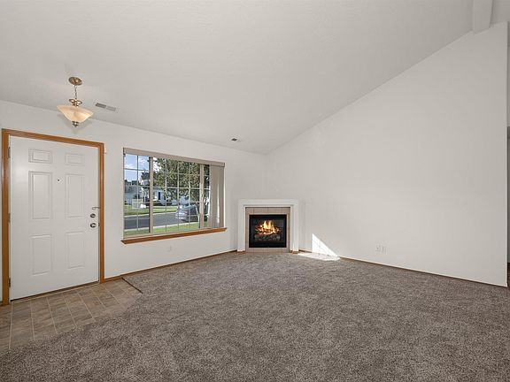 Pride of ownership abounds! Wonderful open spacious floor plan with brand new carpet, new kitchen flooring, newer appliances, new interior paint, gas fireplace, meticulously maintained throughout. Large master features wonderful full bath. Oversized fenced yard with a lovely patio, views and shed for storage. No worries with the full sprinkler system, central A/C and no maintenance vinyl siding. All appliances stay.