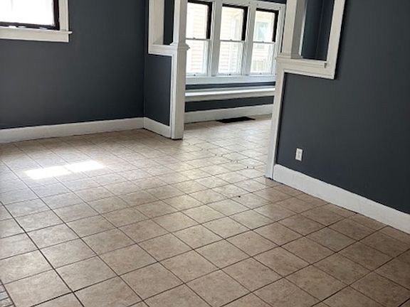 As you approach this property you are greeted by a large three seasons front porch perfect for entertaining and relaxing. As you enter the home you will find beautiful ceramic tile floors throughout the living room, dining room and kitchen. The living room offers plenty of natural light with large windows. The living room flows seamlessly into the beautiful dining room with a ton of natural as well and plenty of room for the whole family and friends. Off the dining room you'll find the large eat-in kitchen with bright white cabinets, ceramic tile backsplash, a deep sink and in an electric stove and refrigerator will be provided! Upstairs are three nice sized bedrooms with plenty of closet space and the large full bath with a bathtub/shower combo with a new surround, updated vanity and light fixtures and a linen closet. All three bedrooms are carpeted, one of them has two closets plus an extra bonus space! Top this all off with a large backyard with a storage shed and room for off street parking off the alley!