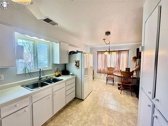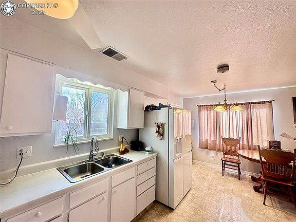 Welcome to this cozy 2-bedroom, 1-bathroom home, perfect for comfortable living with convenient updates throughout. The home features a brand-new furnace (installed April 2024), ensuring warmth and efficiency for years to come. The bathroom has been tastefully updated with new drywall, paint, vanity, toilet and a beautiful shower, all complemented by stunning gray tile that adds a modern touch. The kitchen has been freshly painted and boasts white cabinets and a nearly new LG refrigerator (2 years old). The dishwasher was removed to make space for the refrigerator's water line, but it is available in the garage for the buyer to install as desired. Both bedrooms are generously sized, with the master offering roomy double closets and terrace doors that lead to a private cement patio. The patio, located on the east side of the home, is perfect for enjoying your morning coffee, and its shaded setting makes it ideal for an evening adult beverage. For added convenience, the laundry room is located right off the master bedroom, offering easy access.The property includes a detached 1-car garage with alley entrance and a partially fenced yard, providing privacy and space for outdoor activities. It's perfect for buyers looking for a home with character, charm, and potential.