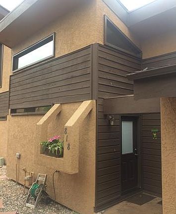 Quiet , Comfortable and serene Townhome with 2 Bedrooms , 1 Bathroom, Great room, and fabulous deck in wooded setting. Wood burning fireplace in great room. One Carport, and one uncovered Parking spot. Open and vaulted and very attractive space. New Furnace and Hot Water Heater, new paint.
